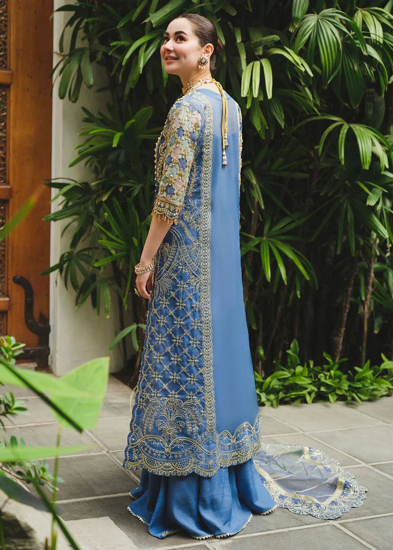 Additional Description: This design features an entirely handworked front encrusted in gota patti, fine pearls and crystals against classic tilla embroidery. The sleeves are beautifully handworked on chatta patti in shades of pink and mint, giving this ensemble the perfect accent. The dupatta is in two shades, blue and mint complimenting the sleeves and adding the a subtle contrast to the shirt, with delicate sequins lines giving it the perfect amount of shimmer, the dupatta is finished with the prettiest lace border in gold tilla embroidery. Slip- Cotton silk